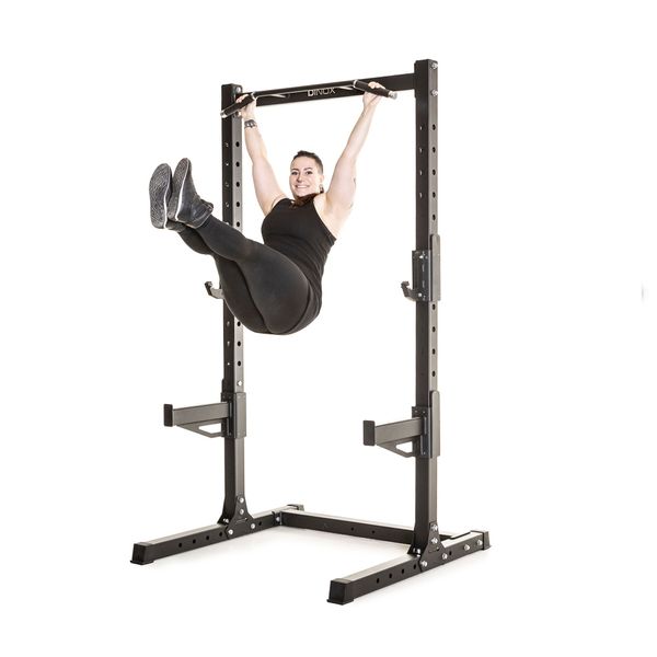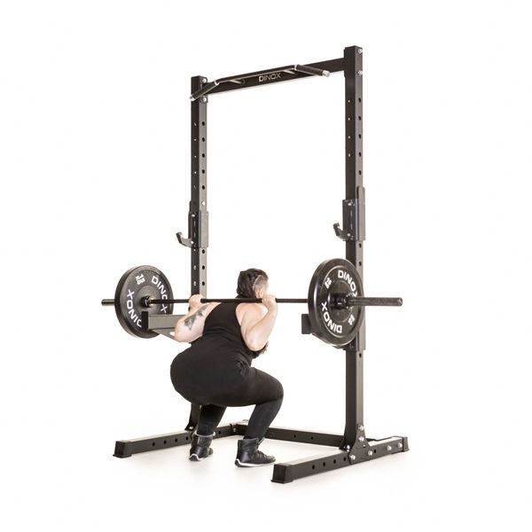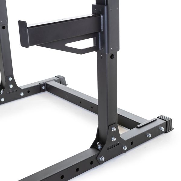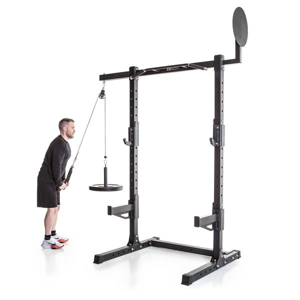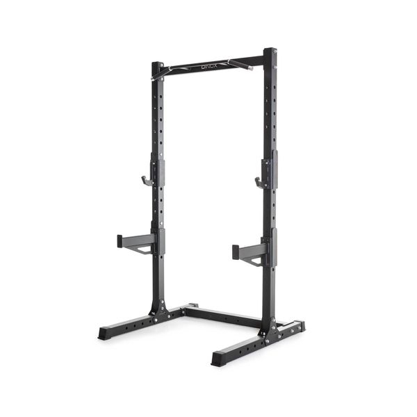 Max Power Rack, som även lämpar sig för användning på gym, är ett högkvalitativt val för hårda träningspass. Med höjdjusterbara stångställ och säkerhetsstänger är Power Rack lämpligt för säker knäböj eller bänkpress med separat bänk. Chin-up-stången är en flerledsmodell med enkelgrepp för hammerlock-chin-ups och nedåtböjda sidogrepp för breda chin-ups eller hängande. Handtagen är behagligt gummerade och har därför en bra greppkänsla