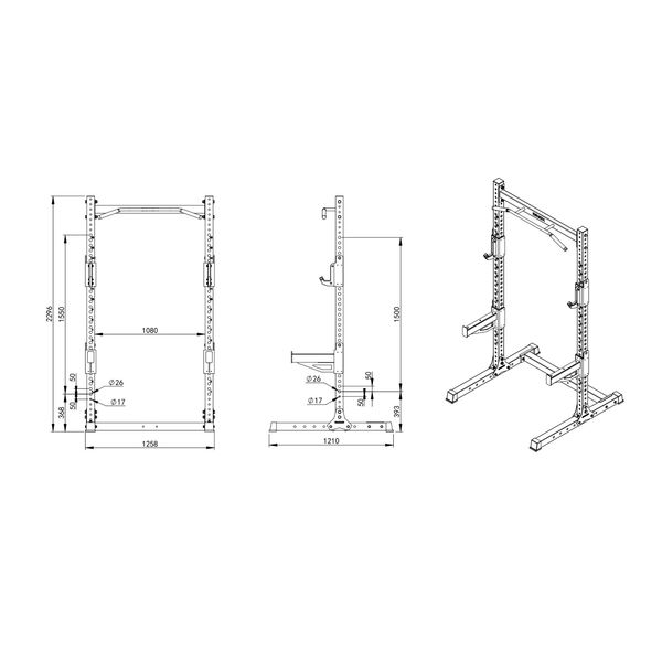 Högkvalitativt styrkelyftsställ för tyngdlyftningsträning hemma eller på gymmet. Mått: p 121cm, storlek L 124,5cm och h 229cm. Max lastkapacitet upp till 450 kg.