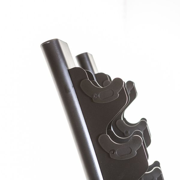 Stället rymmer totalt 10 par hantlar och är lättåtkomligt tack vare den vertikala designen. Dessutom gör den böjda designen på hantelstället det enkelt att ta bort och sätta tillbaka hantlarna. Dina hantlar kommer att hålla sig i gott skick.