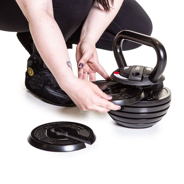 18 kg kettlebell med justerbart grepp, anpassningsbar till olika viktstorlekar, är en utmärkt kombination för både aerobic och styrketräning. Snabb och enkel viktjustering med låsmekanismen på locket.